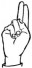 На ћирилици написано РАДНА ЦВЕТАНОВИЋ састоји се из 15 слова [?]. Исписано ћириличном једноручном азбуком за глувонеме: